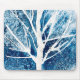 Winter theme blue and white watercolor painting of a white birch tree with snow background. Arty original artwork with a Christmas theme. Blue and white Christmas.
