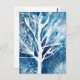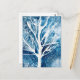 Winter theme blue and white watercolor painting of a white birch tree with snow background. Arty original artwork with a Christmas theme. Blue and white Christmas.