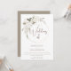 Winter White Floral and Gold Ring Wedding Invitation. This winter wedding invitation features soft white florals nestled on a minimal gold ring, set against a taupe backdrop. A refined design ideal for elegant holiday weddings and timeless winter ceremonies. A beautiful blend of romance and modern simplicity.