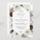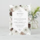 Perfect for Rustic Weddings and Fall Weddings, this invite features hand painted white and natural tan florals, pine cones, and pine leaves. It brings the feeling of nature to your wedding invite with a touch of luxury.