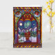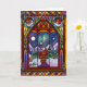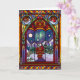 Send your holiday wishes with this cozy stained glass Christmas card
