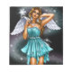 A graceful fairy adorned in a shimmering icy-blue dress, with delicate white wings and sparkling snowflake accents. She embodies the magic and beauty of a winter’s night, glowing softly against a backdrop of falling snow.