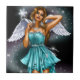 A graceful fairy adorned in a shimmering icy-blue dress, with delicate white wings and sparkling snowflake accents. She embodies the magic and beauty of a winter’s night, glowing softly against a backdrop of falling snow.