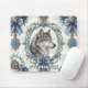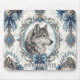Winter Wolf Portrait in Ornate Blue & Grey Frame Mouse Pad