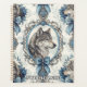This stylised planner features a striking wolf’s head centred within an intricate oval frame adorned with bows, snowflakes, and roses. Rendered in elegant shades of blue and grey against a light, subtly patterned background, the design evokes a wintry, fairytale ambiance. Blending strength and grace, it’s perfect for fantasy lovers, winter themes, and mystical animal art enthusiasts.
