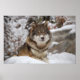 Wonderful wildlife photography featuring a handsome wolf at rest. This is a winter scene with snow covered ground.