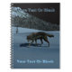 A wolf walking on hard-crusted snow at night; a tree-covered peak in the background. Moonlight reflects off snow and pale bark of birch trees. The wolf's eyes also glow with reflected moonlight. Customise by adding your own text.