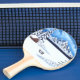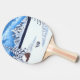 A ping pong paddle with a beautiful winter scene, including snow covered mountains, evergreens, and rustic cabin. The image and text can be personalised. Original artwork by W.B.