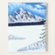 A planner with a beautiful winter scene, including snow covered mountains, evergreens, and rustic cabin. The image and text can be personalised. Original artwork by W.B.