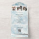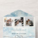 This all-in-one winter wedding invitation blends beauty and convenience. Featuring dusty blue snowflakes, a silver rope heart, space for three personal photos, and a QR code for RSVP or wedding website, it’s perfect for modern couples planning a snowy celebration. Folded format with tear-off RSVP postcard.