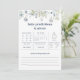 The DELWYN gender neutral winter wonderland baby shower predictions and advice game designhas a white background with a watercolor Christmas ornaments adorning the page with wintery snow, snowflakes, icy blue berries and evergreens, all in wintery blues, and a combination of fancy and sans serif fonts in blue and grey, and "baby predictions + advice" in a fancy serif font, the wording "advice for the parents to be" in a serif font in blue. This baby predictions & advice game template is the perfect choice for a white Christmas baby shower game.