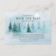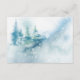 Beautiful watercolor winter wonderland scene featuring spruce & pine trees on a snow filled background.