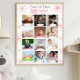 A winter wonderland birthday gift or decor to display the baby first year from month to month in a photo collage poster. Perfect gift for birthday with pink colour and glittered background snowflakes and a personalised photo of a baby. Perfect for 1st birthday. Just upload your baby's photos and make this template your cute memory.
