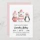 Celebrate a magical winter birthday with this adorable pink invitation featuring a cheerful bear, playful penguin, and jolly snowman! Set against a soft pink backdrop, this design brings the charm of a winter wonderland to your child’s special day, perfect for a cosy birthday filled with seasonal cheer and cute arctic friends. Whether it's for a first birthday or a festive winter celebration, this invitation sets a warm, whimsical tone that guests will love. Bring a touch of winter magic to the party with this enchanting invitation!