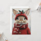 A charming winter-themed illustration of an adorable bunny dressed in a cosy red coat, matching scarf, and knitted hat adorned with holly and berries. The bunny’s big, sparkling eyes add a touch of whimsy, capturing the joy and warmth of the holiday season. Surrounded by softly falling snow, this delightful scene embodies the magic of winter, making it perfect for festive greetings or seasonal decor.