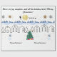 This enchanting Christmas wrapping paper brings to life a cosy winter village scene. Snow-dusted homes with warm, glowing windows are nestled among twinkling Christmas trees and cheerful snowmen, creating a festive holiday landscape. A gentle snowfall blankets the scene, while Moravian stars hang overhead, casting a soft, magical light. A tiny fairy adds a sprinkle of whimsy as Santa’s sleigh glides across the starry night sky above. With its rich details and classic holiday charm, this wrapping paper transforms every gift into a charming winter wonderland waiting to be unwrapped.