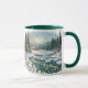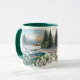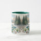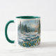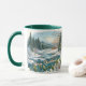 cosy up with a warm cup of coffee and enjoy the winter wonderland scene on this beautiful mug. Featuring a detailed illustration of a snowy forest, frozen lake, and cosy cabin, this mug is the perfect way to add a touch of winter magic to your daily routine