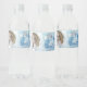 Beautiful blue and white water bottle label with silver diamond snowflakes, modern abstract pine trees, and string lights. Add your teens photo to personalise.