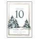 This beautiful winter wonderland table number features snow covered evergreen trees on a white background with a faux gold frame around the outside. You can customise these table numbers with the different table numbers for your wedding or event. The back side has the same design as the front so the table number can be seen from multiple sides.