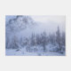 Fog rolling through the spruce forest with mountains above. Beautiful winter wonderland scene.