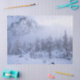 Winter wonderland, fog, spruce forest and mountain tissue paper