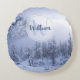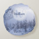 Winter wonderland fog spruce forest snow monogram round cushion