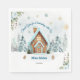 These adorable paper napkins features a cozy watercolor gingerbread house topped with snowy icing, surrounded by a winter forest of pine trees and icy blue floral accents. Whimsical watercolor illustration with a rustic winter vibe Ideal for winter baby showers hosted in January, February, or March Icy blue, snowy white, and warm gingerbread brown (Gender Neutral / Boy friendly) Easily customize the details to create a warm and memorable invite for your guests