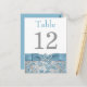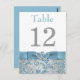 This elegant ice blue, silver grey floral FAUX glitter damask pattern table number postcard has a background of assorted white snowflakes on it and a PRINTED steel blue ribbon and bow with a pair of diamond jewels and FAUX blue glitter joined hearts on it that matches the wedding invitation shown below. It would be perfect for a winter wonderland theme or for a Christmas or New Year's Eve wedding.**You MUST change the number 12 to each of the table numbers you need, add it to your cart, and then return and repeat the process until you have all the individually numbered cards that you need in your cart. Stand it on a small easel, or in your centerpieces. If you need assistance, email niteowlstudio@gmail.com.