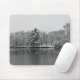 This photograph, presented in black and white, depicts the beauty of evergreen trees by a lake on a snowy winter day. It transmits the peace and tranquillity that comes with a fresh blanket of snow and the fairyland it creates -- truly a Winter Wonderland! Looking closely, the viewer will note that the photo was taken as snow was falling (and falling), adding unique effects to this idyllic scene. Location: Illinois, USA