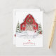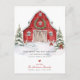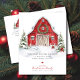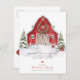 This festive winter moving announcement Christmas card features a red barn with a green wreath, set against a snowy landscape and trees. The card is perfect for sending to friends and family during the holiday season to let them know about your new address while also sharing your love of the country. The overall design is festive and charming, and the card is sure to put a smile on the faces of your loved ones.
