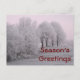 Christmas card with a frosted winter wonderland lanscape. Text on front: Season's Greetings.