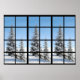 Beautiful poster of snowy fir trees in a winter wonderland as viewed from a panoramic window frame. You'll think you are snuggling up in front of the fireplace watching it snow, snow, snow. See other products with this image for your enjoyment.