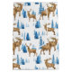Our blue and tan Winter Wonderland & Reindeer Gift bag features watercolor illustration of a white winter wonderland landscape with snow covered evergreen pine trees and majestic reindeer in beautiful shades of white, blue and tan.