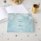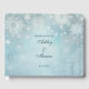 Celebrate the happy couple with a winter wonderland! Snowflakes and shimmery lights scatter among a pale blue background in a subtle winter wood to bring the beauty of winter inside for your celebration. Makes an impressive, shimmering guest book for your wintertime wedding or other winter wonderland event. Available with matching products.
