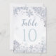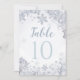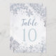 Silvery-blue wedding table number card with snowflakes, ice, frost, and snow-covered tree branches. You MUST change the number 10 to each number that you need, add it to your cart and then return and change it to the next number you need, then add that number to your cart and so on. These coordinate with the wedding welcome sign with the same design. Email niteowlstudio@gmail.com with any questions or requests.