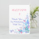 Each thank you card features the joyful watercolor frame filled with whimsical winter elements in soft blue, pink, and turquoise tones. The happy snowmen, evergreen trees, chirping birds, and sparkling snowflakes create a cohesive finale to your winter wonderland celebration. Customize the text to create heartfelt thank you messages that capture the magic of your snowy adventure.