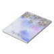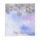 Beautiful personalised Christmas notepad design featuring faux gold glittery snowflakes on an abstract background in shades of blue, pink and white decorated with sparkles and twinkle lights. The text is fully customisable. To change it use the Personalise option. For more changes, such as changes to the font, font colour or text layout, use the Edit design tool option.