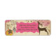 Winter Wonderment return address labels with a cream with snowflakes background, brown silhouette deer, ornaments, and a pink frame where you can add your name and address before ordering.