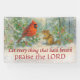 A nature themed banner featuring a Scripture verse from the King James Bible, with a charming cardinal and chipmunk in a rustic winter woodland.
