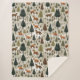 Beautiful winter-themed blanket design featuring adorable foxes and lush woodland trees. Perfect for cosy home decor, bringing warmth and a touch of nature to your space.
