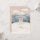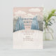 Christmas holiday party Invitation with cartoon winter woodland nordic landscape in pink blush blue colours.