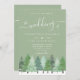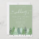 Winter Woodland Sage Green Wedding Invitation with Watercolor Fir Trees, Script Typography & QR Code RSVP