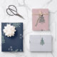 Winter Wrapping Paper Set – Evergreen Trees & Snowflakes on Navy Blue, Rose Beige & Frosted Grey Sheets (3 Pack)