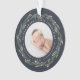 A perfect gift for new parents, this elegant acrylic Christmas ornament features front and back photos encircled by a wreath of dark green leaves and red berries. "[Name's] first Christmas" curves over the top of each photo, with the year beneath. Customise this round ornament with a treasured photo on each side to create a unique keepsake of your baby's first Christmas.