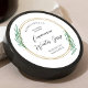 Create custom labels for your holiday collection with this christmas product label design. Featuring a simple gold greenery wreath, elegant calligraphy and fully editable text, this round sticker can be used for christmas candles, soaps, diffusers and more!