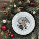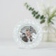 Elegant holiday photo card in a unique round shape features a favourite photo encircled by a wreath of white winter foliage on an icy pale blue-green background. Personalise with a custom holiday greeting (shown with "have yourself a merry little Christmas"), your names or family name, and the year in chic grey lettering.