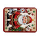 A festive design with a snowman, Santa, deer, and a decorated Christmas tree, set against a golden, dotted floral background, evoking warmth and holiday magic. "Original Image was generated by Meta AI. AI generated artwork. Licensed under CC BY-SA 4.0."