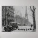 Let the timeless charm of Paris in winter captivate you with this picturesque postcard. As snowflakes dust the City of Lights, the iconic Eiffel Tower stands tall in the hazy background, veiled by the gentle snowfall. Vintage cars line the streets, and Parisians tread the snowy avenues, wrapped in the warmth of their coats. This snapshot of a bygone era captures the romantic allure of Paris, transformed into a monochromatic winter wonderland. Perfect for sharing a touch of nostalgia and the enchanting beauty of winter in one of the world's most beloved cities.