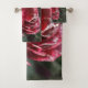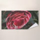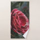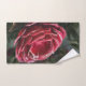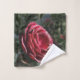 A bright magenta rose sparkles with the crystals of the last frost of winter.