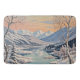 Surprisingly: Ice doesn't always freeze solid! Tiny air bubbles and impurities can create stunning patterns and textures within the frozen surface. This serene design captures the peaceful beauty of a winter landscape, featuring a tranquil lake surrounded by snow-covered trees and majestic mountains. The setting sun casts a warm glow over the scene, creating a breathtaking vista that evokes a sense of calm and wonder. Perfect for adding a touch of winter magic to any project.